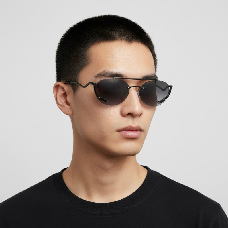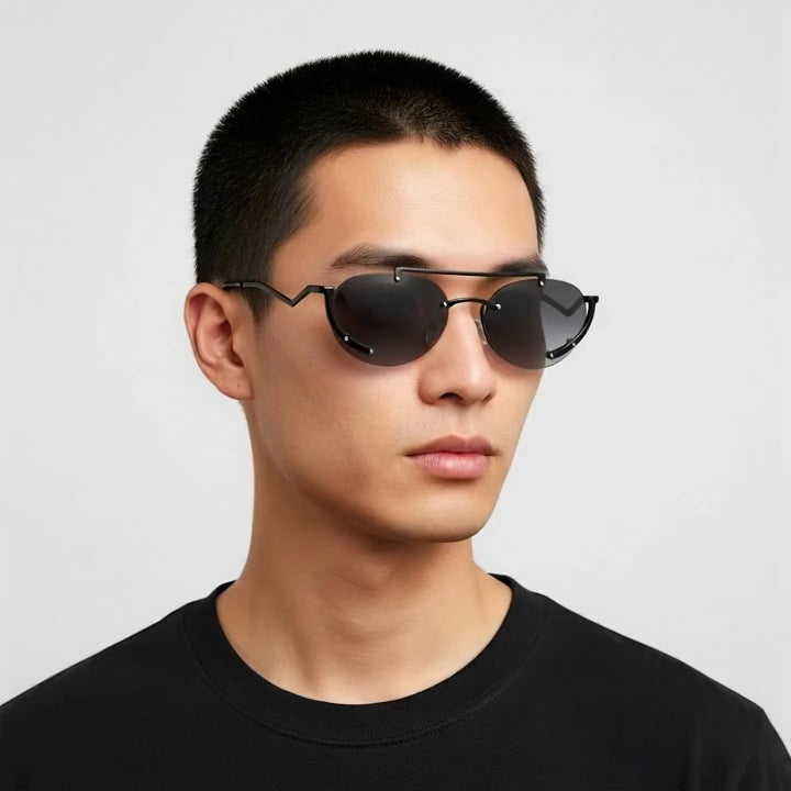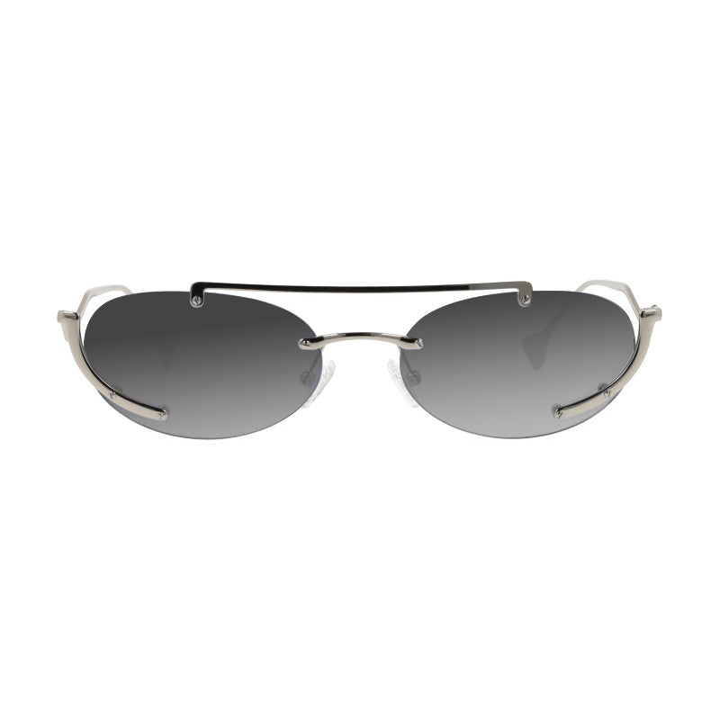 Leggero e futurista, Tozio esalta la purezza del design rimless. Aste sottili in metallo e lenti scure definiscono un occhiale fashion dal carattere essenziale, perfetto per chi guarda avanti. Varianti: Silver, Black.